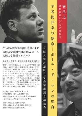また、図書館AVホールで、「学者批評家の使命―ポール・ド・マンの場合」と題して慶應義塾大学文学部教授の巽孝之先生の記念講演が行われました。