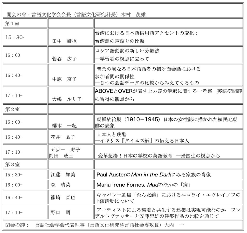 10月28日15時20分より、大阪大学豊中キャンパス、言語文化研究科の会議室で、言語文化学会、言語社会学会の合同研究会が開催されました。当日の次第は以下のとおりです。