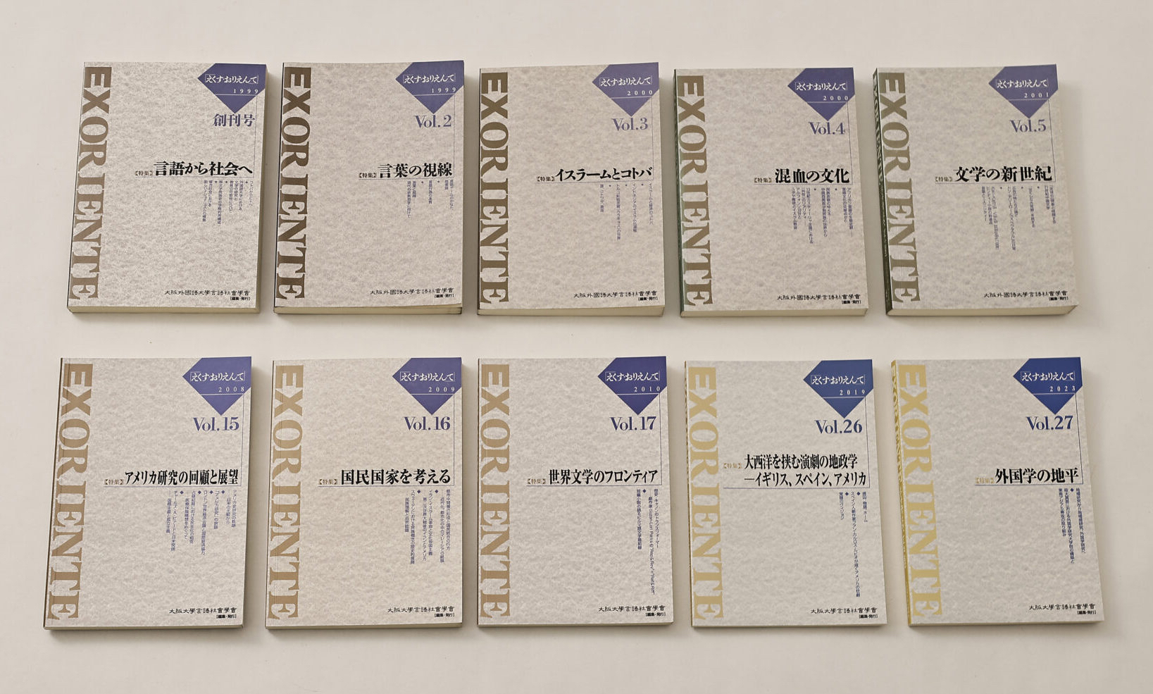 大阪大学言語社会学会は、学会誌、EX ORIENTEを年1回刊行しています。大阪大学の教員、大学院生会員の論文の他、毎号特集を組んで、著名な学識者の論稿を掲載。また研究大会での記念講演も掲載しています。